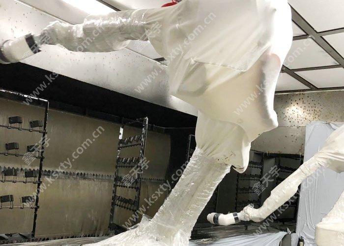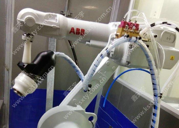 4、噴涂機(jī)器人可以同時(shí)噴涂2--5種不同的產(chǎn)品,一臺(tái)抵多臺(tái)。