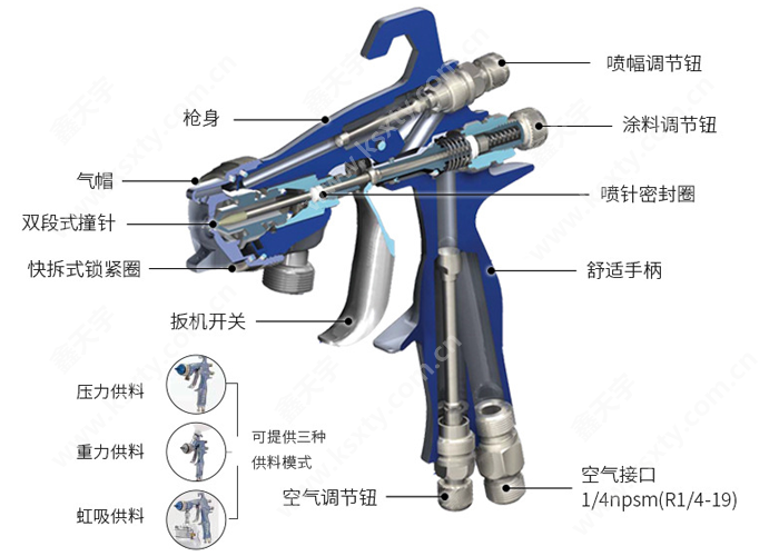 可提供的噴針/噴嘴規格包括0.030“、0.042“和0.055“(0.8、1.1和1.4mm)。